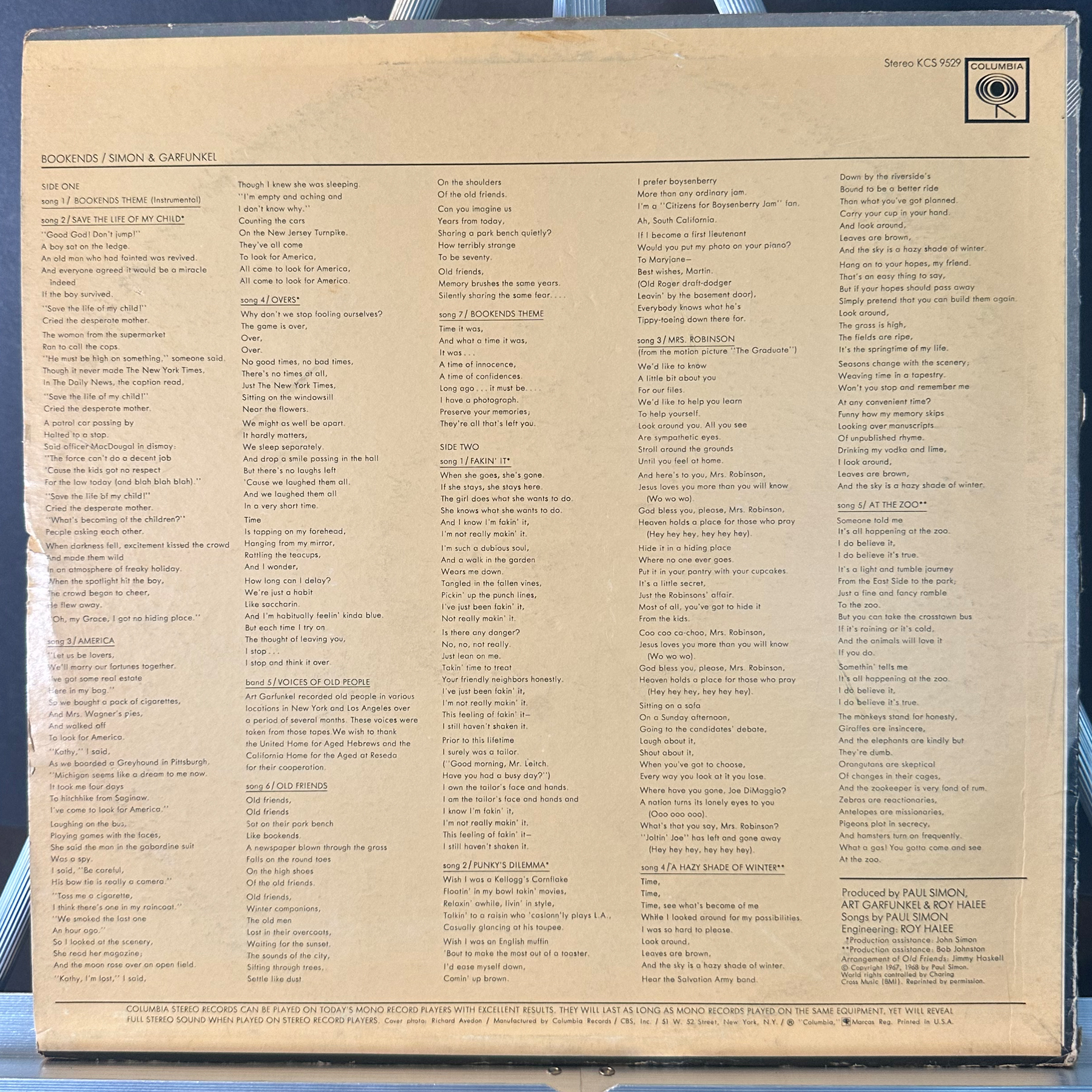 Label: Columbia – KCS 9529 Format: Vinyl, LP, Album, Stereo, Santa Maria Press Country: US Released: Apr 1968 Genre: Rock, Pop Style: Folk Rock, Soft Rock, Pop Rock, Vocal